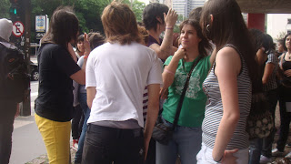 Meninos também são fãs, mas a quantidade de meninas é muito maior e chega a ofuscar a presença deles, por isso, não ocosionalmente me peguei escrevendo “as fãs” ao invés de “os fãs”. As meninas adoram, os meninos se espelham, todos cantam e se divertem com todo mundo. Entre os fãs, não há diferença, todos parecem se conhecer e se gostar.