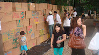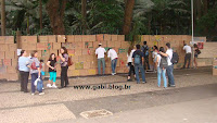 Sábado foi perfeito. Logo que eu e meu irmão chegamos já tinha bem mais gente lá, montando as caixas pra montarmos o ‘muro de recados’. Legal. Fomos montando, primeiro não deixamos encostado e ficou caindo por causa do vento, depois encostamos na grade do Parque Trianon. E as pessoas chegavam pra deixar seu recado, mesmo. Aquele muro virou point.