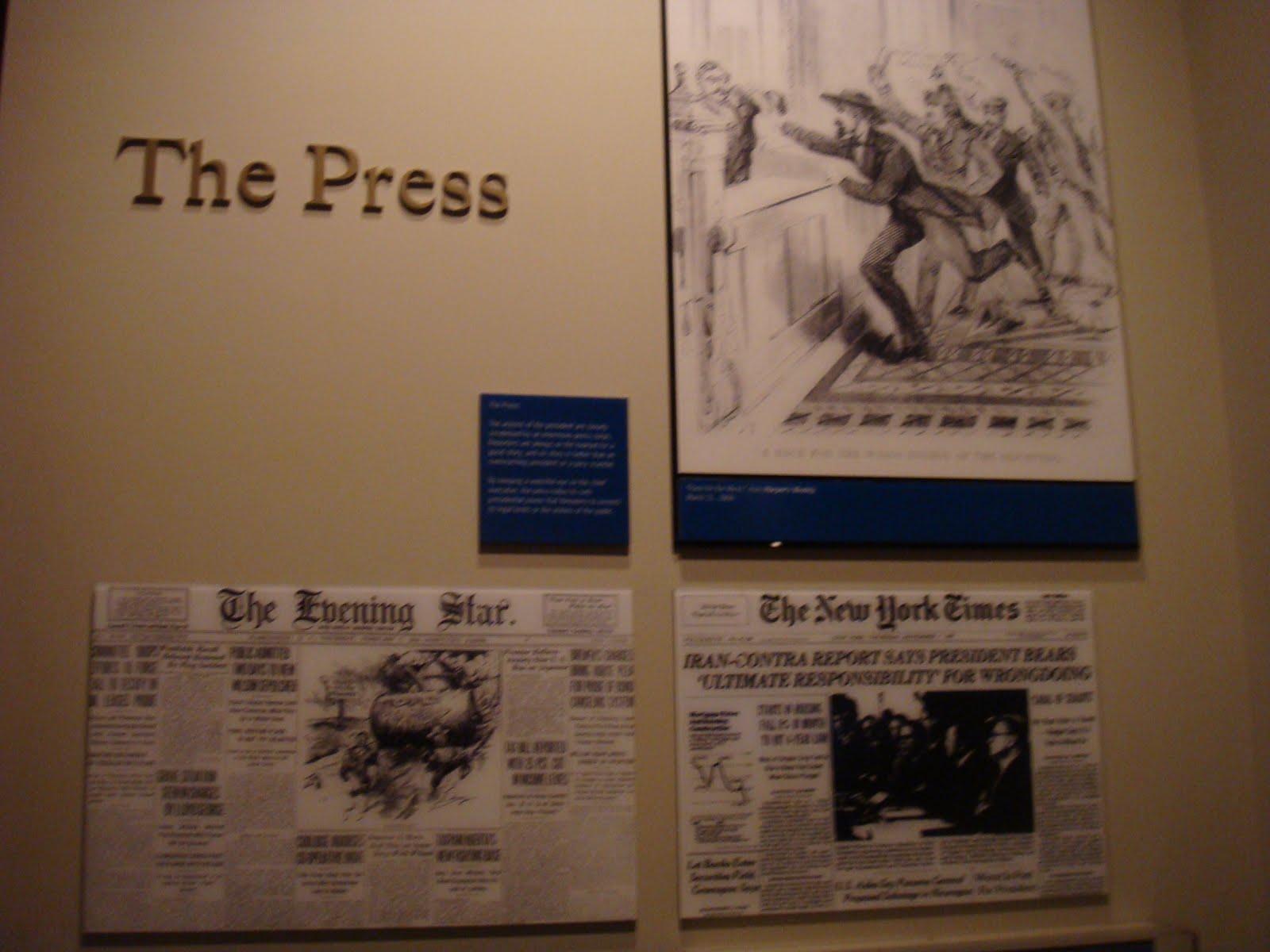 Como uma boa estudante de jornalismo, tudo o que tinha a ver com jornais, imprensa e jornalistas chamava minha atenção. A imprensa americana é considerada a melhor do mundo, mas sobre isso vou escrever quando eu for no Newseum, um museu dedicado a essa minha paixão! Em um momento vi crianças mal educadas, batendo nos vidros e nas paredes e gritando, fiquei pensando o que eu faria se fosse meu filho fazendo isso em um museu, quando eu ouço um grupo de crianças gritando: “Olha, é o George Washington!” e correndo até a foto do primeiro presidente do país. Fiquei impressionada, eu duvido que se os brasileiros vissem a imagem de Deodoro da Fonseca ou, que seja, Fernando Henrique Cardoso, os reconhecessem, algo que realmente parei para pensar em relação à má-educação.