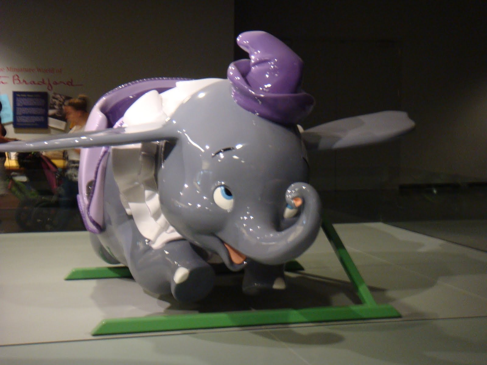 Na parte da cultura popular havia verdadeiros tesouros da história, como o sapato de Dorothy, do musical O Mágico de Oz; a roupa do personagem Rafik, macaco padrinho do Simba, no musical O Rei Leão; desenhos originais do Looney Tunes e logo na entrada, esse Dumbo bem grande da foto ao lado.